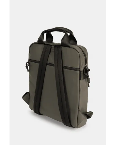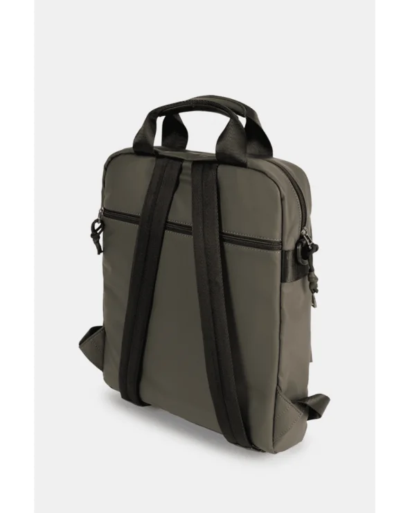 Mochila verde para hombre con dos asas y espíritu urbano. Ligera, resistente y con bolsillo trasero antirrobo, es perfecta para trabajo, tu rutina diaria o viajes. Formato slim que no abulta, apertura con cremallera y bolsillos exteriores para tener lo esencial a mano. El acabado en verde combina con todo y las asas superiores facilitan el agarre rápido, mientras las correas ajustables permiten llevarla cómodamente a la espalda todo el día