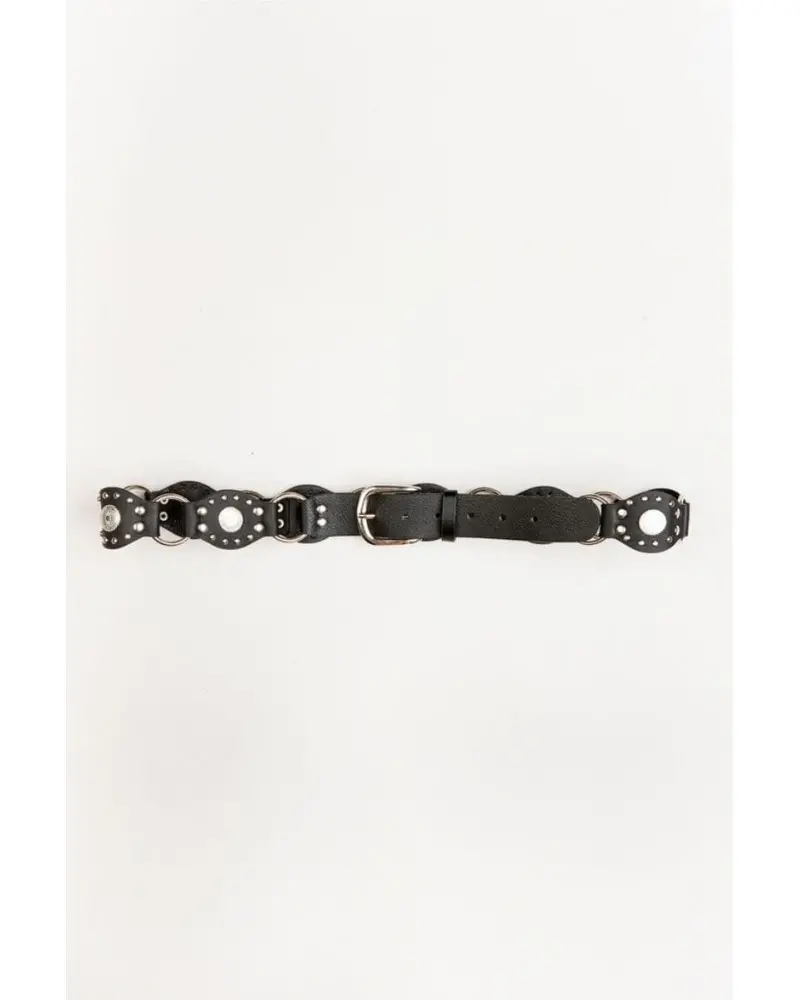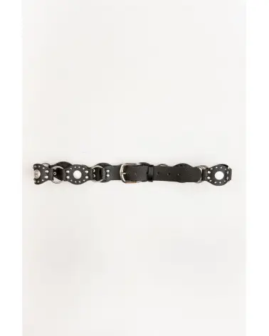 El Cinturón Thunder presenta un diseño estructurado con piezas metálicas decorativas distribuidas a lo largo de la tira, creando un efecto visual potente y equilibrado. La hebilla clásica permite un ajuste cómodo, mientras que los detalles aportan un estilo marcado y contemporáneo.