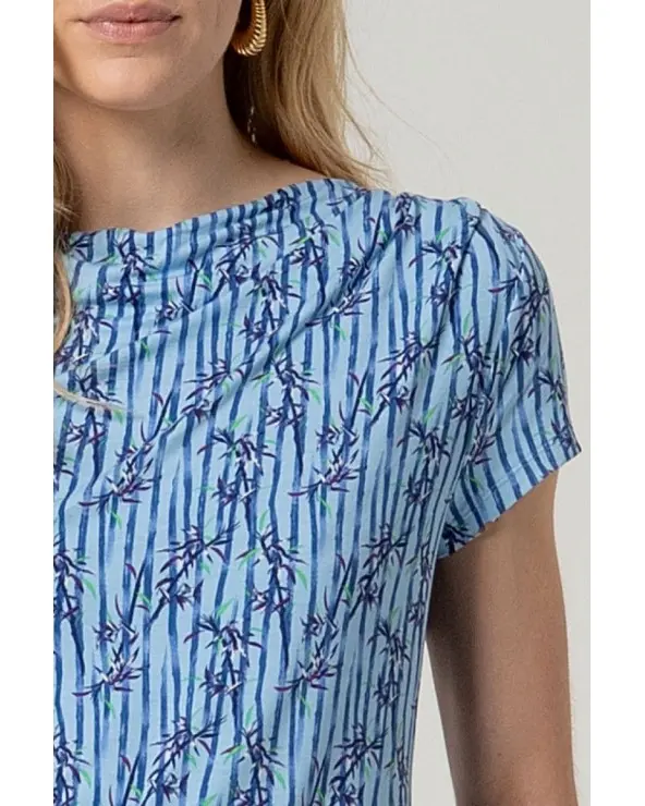 Camiseta Estampada Escote Drapeado de Surkana diseñada para aportar movimiento y frescura a tus looks diarios. Su escote suavemente drapeado enmarca el cuello con naturalidad, creando un efecto favorecedor que estiliza sin esfuerzo. El estampado inspirado en la naturaleza aporta un aire luminoso y dinámico, ideal para quienes buscan prendas con personalidad para la temporada primavera verano. El tejido es suave, ligero y agradable al tacto, pensado para acompañarte durante todo el día con máxima comodidad y una sensación fresca sobre la piel.